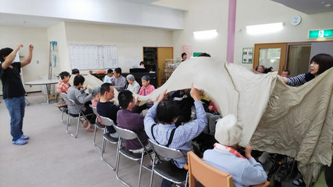 ラストは大きな布を、音楽に合わて全員で上下に~♬